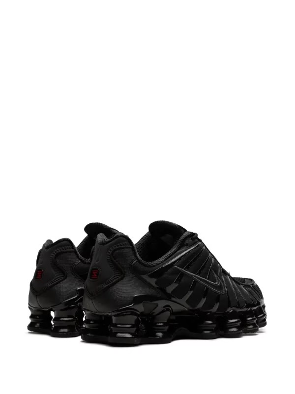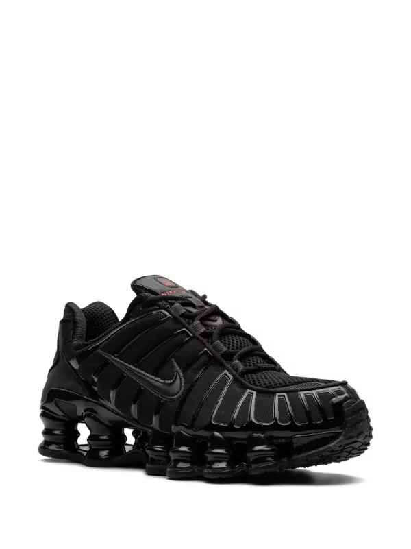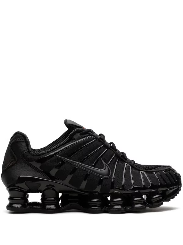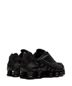 The Nike Shox TL “Black Max Orange” is a women’s exclusive colourway of the retro sneaker with a monochromatic black design. This model features a black fabric construction with tonal TPU overlays and is enhanced by a black patent leather Swoosh logo on either side of the shoe. Underneath, the Shox TL’s signature piston-shaped columns provide a comfortable and responsive ride.