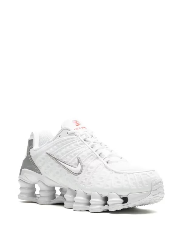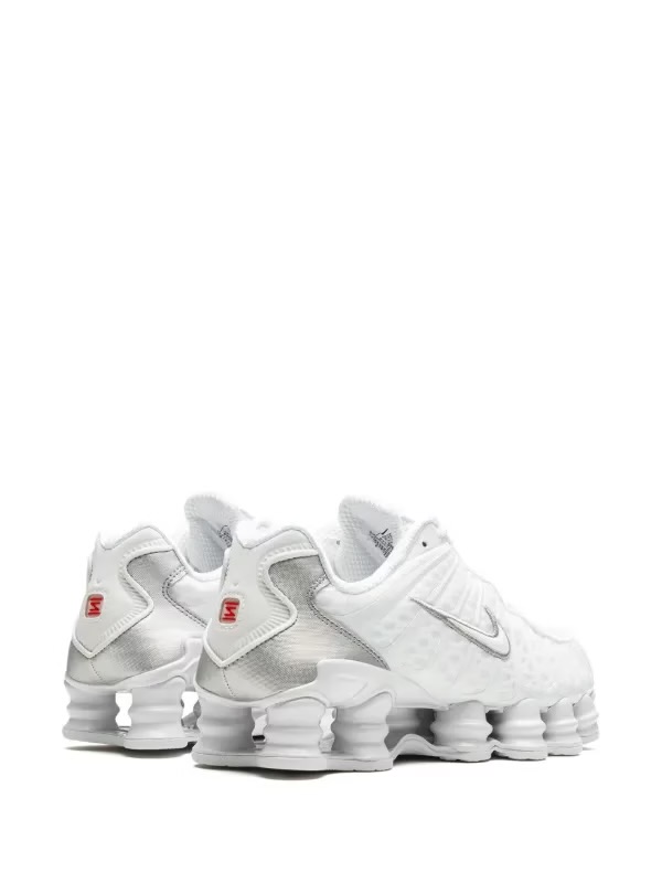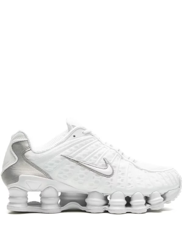 Nike’s Shox TL “White” sneakers are a retro-inspired silhouette, constructed from white fabric overlaid with a tonal TPU cage. Underfoot sits the signature piston-shaped columns, offering comfortable yet responsive cushioning.
